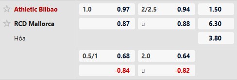 Thông tin kèo bóng đá Athletic Bilbao vs Mallorca: