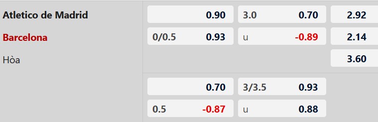 Soi kèo châu Á Atletico Madrid vs Barcelona: