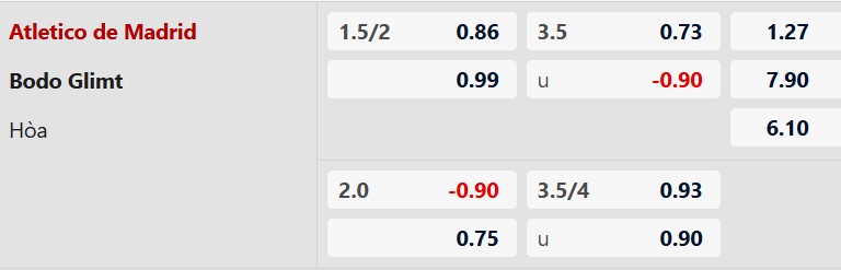 Soi kèo châu Á Atletico Madrid vs Bodo Glimt: