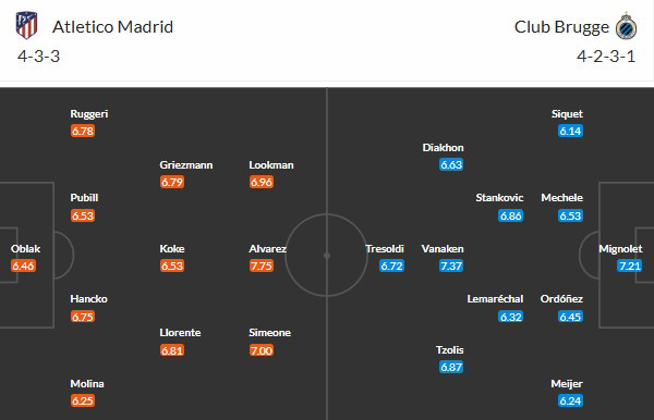 Tối thiểu 2 bàn hiệp 1: 6/8 trận đấu gần đây của Atletico xuất hiện từ 2 bàn thắng trở lên trong hiệp 1. 4/5 trận vừa qua của Club Brugge ở Champions League xảy ra tình trạng tương tự.