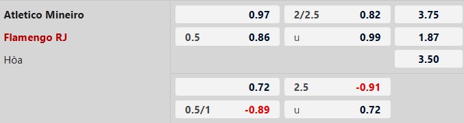Thông tin tỷ lệ Atletico Mineiro vs Flamengo: