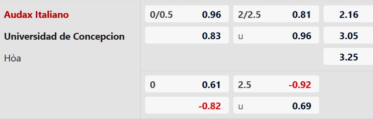 Soi kèo Audax Italiano vs Univ. Concepcion: