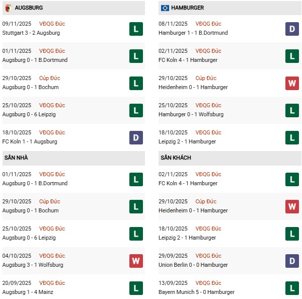 - Trên sân nhà, Augsburg thắng 5, thua 3 trước Hamburger.