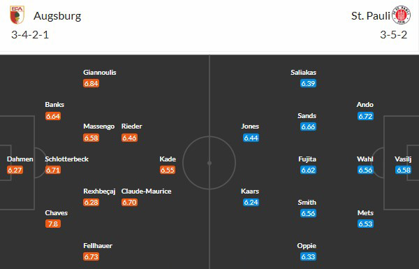 Đội hình dự kiến Augsburg vs St. Pauli: