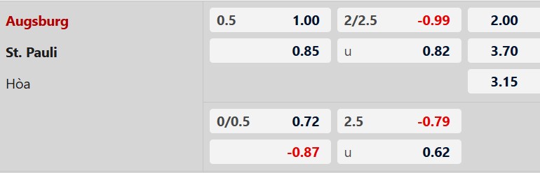 Thông tin tỷ lệ kèo Augsburg vs St. Pauli: