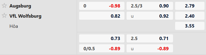 Thông tin tỷ lệ bóng đá Augsburg vs Wolfsburg: