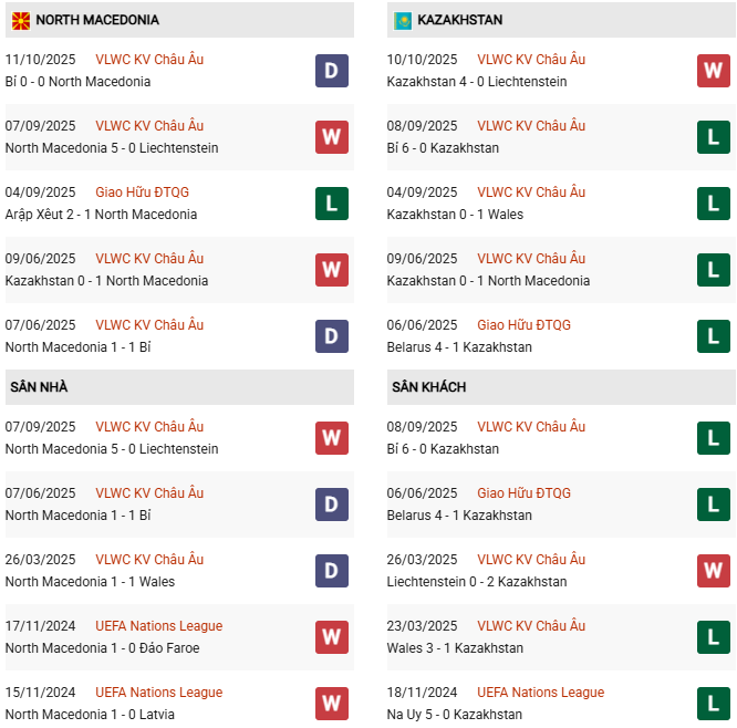 Thống kê phong độ Bắc Macedonia vs Kazakhstan: