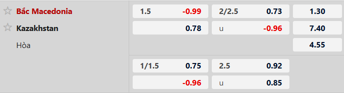 Thông tin tỷ lệ kèo Bắc Macedonia vs Kazakhstan: