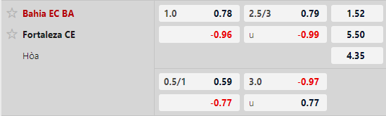 Thông tin tỷ lệ bóng đá Bahia vs Fortaleza: