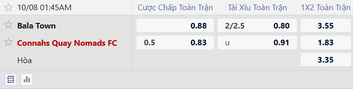 3 trận ra sân gần nhất của Bala Town khép lại dưới 2.5 bàn thắng. Trong khi đó, chỉ 2/5 trận đã qua trên sân khách của Connah’s Quay có từ 2.5 bàn thắng. Đáng chú ý, 6/7 trận hai đội gặp nhau gần nhất có không quá 3 bàn thắng. Với tỷ lệ kèo Tài Xỉu là 2 1/4, kèo Xỉu nên được cân nhắc.