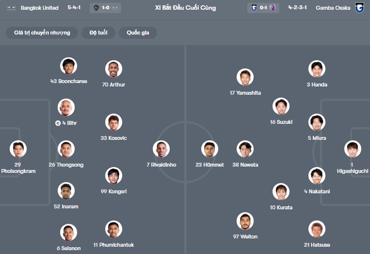Đội hình dự kiến Bangkok United vs Gamba Osaka: