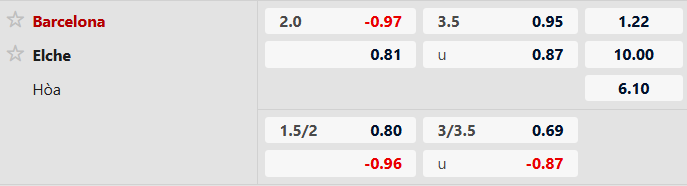 Thông tin tỷ lệ kèo bóng đá Barcelona vs Elche: