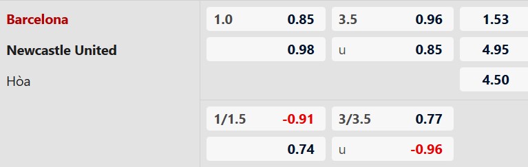 Soi kèo châu Á Barcelona vs Newcastle: