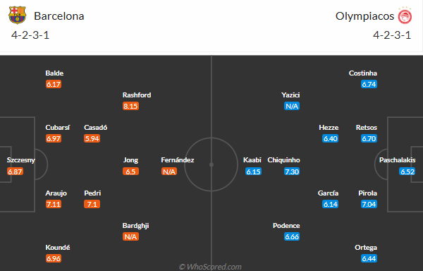 Đại diện Hy Lạp hòa không bàn thắng trên sân nhà trước đối thủ yếu Pafos ở trận mở màn trước khi thua 0-2 trên sân khách trước Arsenal. Những kết quả này cho thấy sự chật vật của họ trong việc ghi bàn ở cấp độ cao nhất của bóng đá châu lục. Làm khách tới xứ Catalunya trong bối cảnh để thua 2/3 trận sân khách gần đây sẽ là thử thách khó khăn dành cho Olympiakos.
