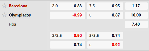 Thông tin tỷ lệ kèo bóng đá Barcelona vs Olympiakos: