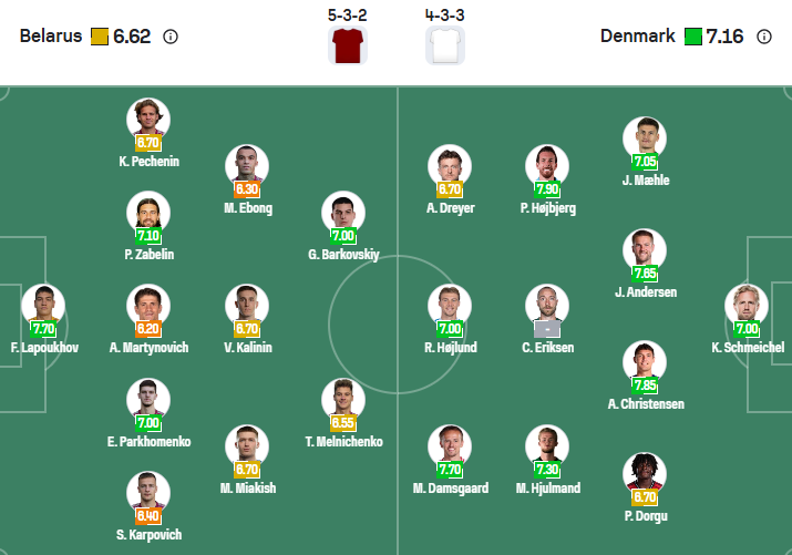 Đội hình dự kiến Belarus vs Đan Mạch: