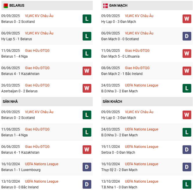 Thành tích đối đầu Belarus vs Đan Mạch: