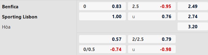 Thông tin tỷ lệ kèo bóng đá Benfica vs Sporting Lisbon: