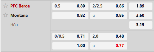 Thông tin tỷ lệ Beroe vs FC Montana: