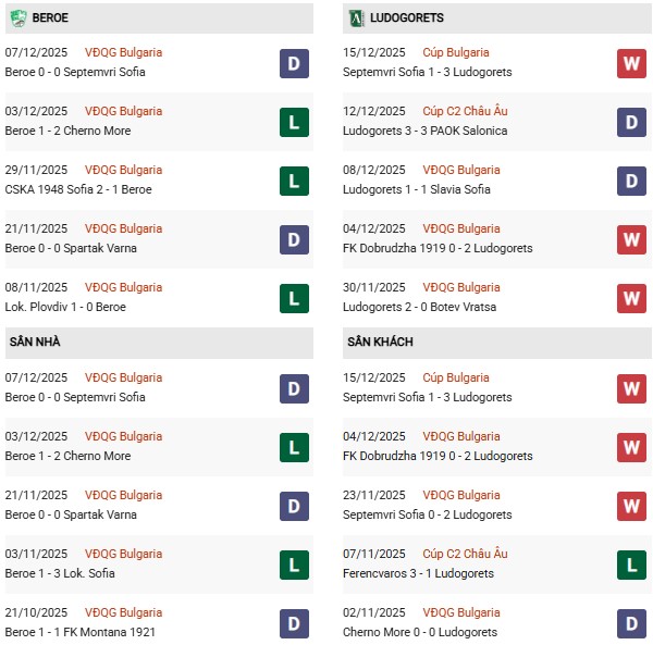 - Beroe toàn thua cả 10 trận đối đầu Ludogorets gần đây.