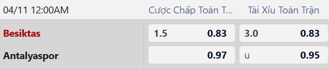 Thông tin tỷ lệ kèo Besiktas vs Antalyaspor: