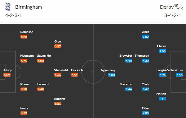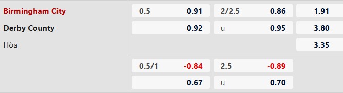 Derby County thắng theo châu Á: Derby County thắng 6/9 cuộc đối đầu gần nhất, thắng 5/8 chuyến làm khách gần đây tại Birmingham và thắng 9/11 chuyến làm khách vừa qua. Còn Birmingham thua cả 4 trận vừa qua. Do đó, có thể tin vào Derby County ở trận này.