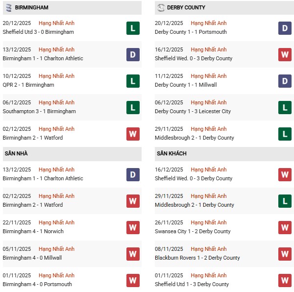 NHẬN ĐỊNH BIRMINGHAM VS DERBY COUNTY, 19H30 NGÀY 26/12 HÔM NAY