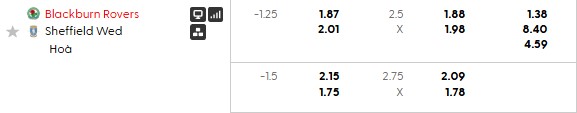 Thông tin tỷ lệ kèo Blackburn vs Sheffield Wed:
