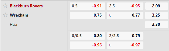 Thông tin tỷ lệ kèo Blackburn vs Wrexham: