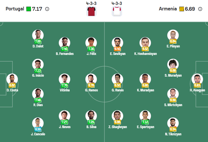 Đội hình dự kiến Bồ Đào Nha vs Armenia: