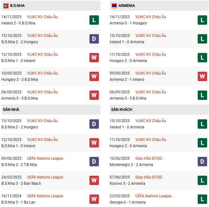Thống kê phong độ Bồ Đào Nha vs Armenia: