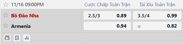 Thông tin tỷ lệ kèo bòng đá Bồ Đào Nha vs Armenia: