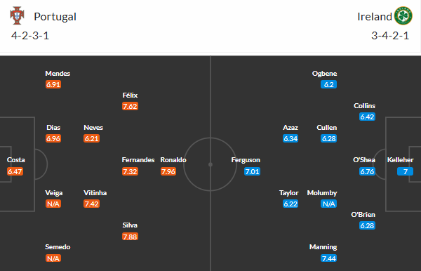 Thông tin lực lượng Bồ Đào Nha vs Ireland: