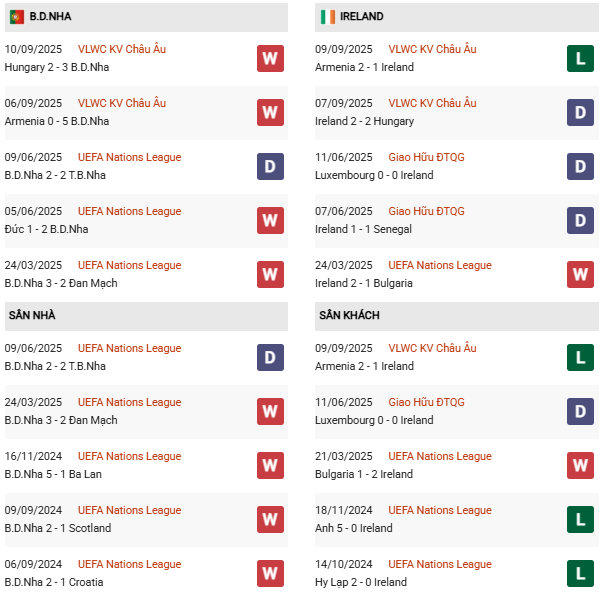 - Trên sân nhà, Bồ Đào Nha thắng cả 3 trận trước Ireland.