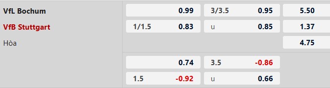 Thông tin tỷ lệ cược Bochum vs Stuttgart: