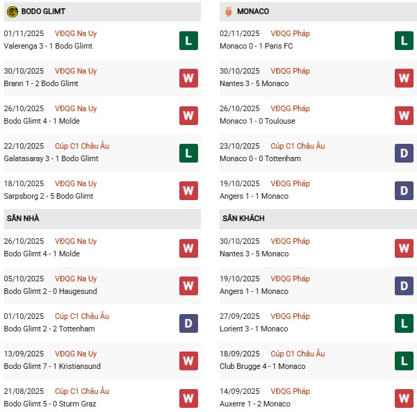 Thống kê phong độ Bodo Glimt gặp Monaco: