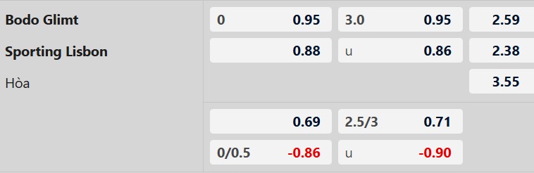 Tỷ số lẻ: 3/4 trận gần đây của Bodo Glimt kết thúc với tỷ số lẻ. 4/5 trận vừa qua của Sporting Lisbon số bàn thắng cũng không chia hết được cho 2.