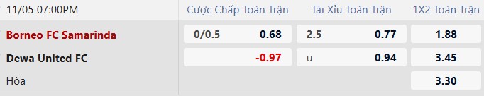 Thông tin tỷ lệ cược Borneo đấu với Dewa United: