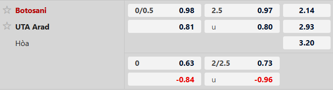Soi kèo tài xỉu Botosani vs UTA Arad: