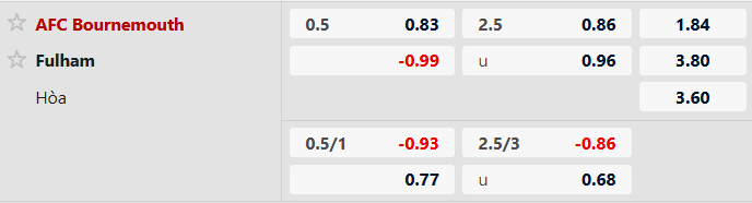 Thông tin tỷ lệ kèo bóng đá Bournemouth vs Fulham: