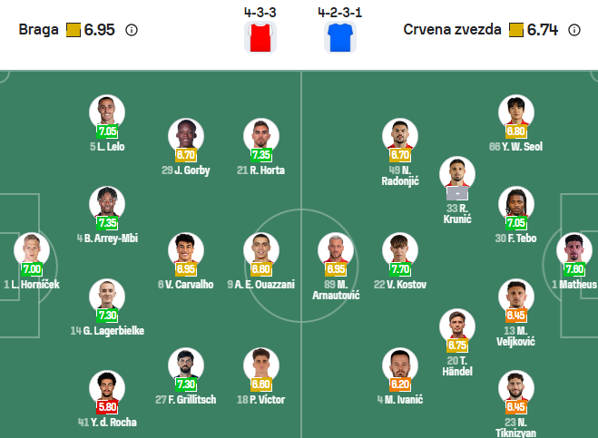 Đội hình dự kiến Braga vs Crvena Zvezda: