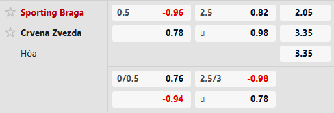 Soi kèo tài xỉu Braga vs Crvena Zvezda: