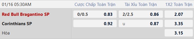 Thông tin tỷ lệ kèo Bragantino vs Corinthians: