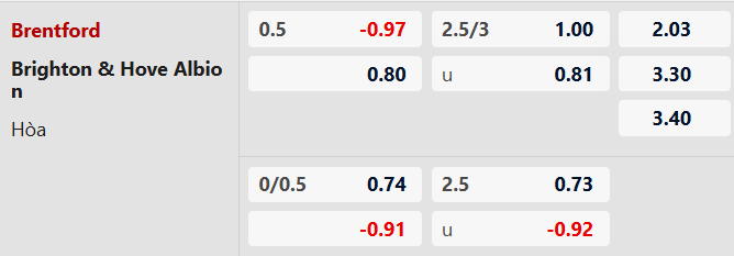 Thông tin tỷ lệ bóng đá Brentford và Brighton: