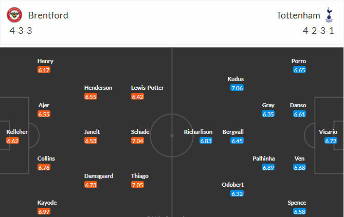 Đội hình dự kiến Brentford vs Tottenham Hotspur: