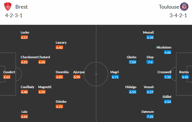 Đội hình dự kiến Brest vs Toulouse: