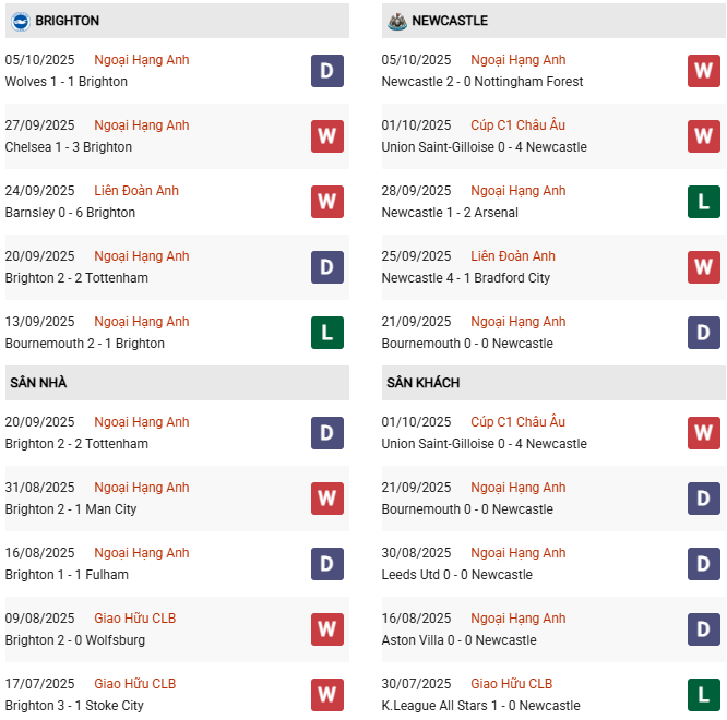 - Trên sân nhà, Brighton thắng 3, thua 2 trước Newcastle.