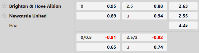 Brighton mùa này đã ghi đến 10 bàn nhưng cũng phải nhận về 10 bàn thua. Trong khi đó, Newcastle đã có 6 pha lập công chỉ sau 2 trận đấu liên tiếp. Vậy nên với tỷ lệ tài xỉu 2 1/2, cơ hội để kèo Tài xuất hiện vẫn là rất cao.