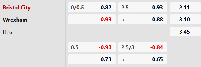 Thông tin tỷ lệ kèo Bristol City vs Wrexham: