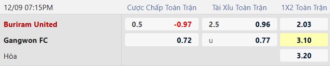 Thông tin tỷ lệ bóng đá Buriram United vs Gangwon:
